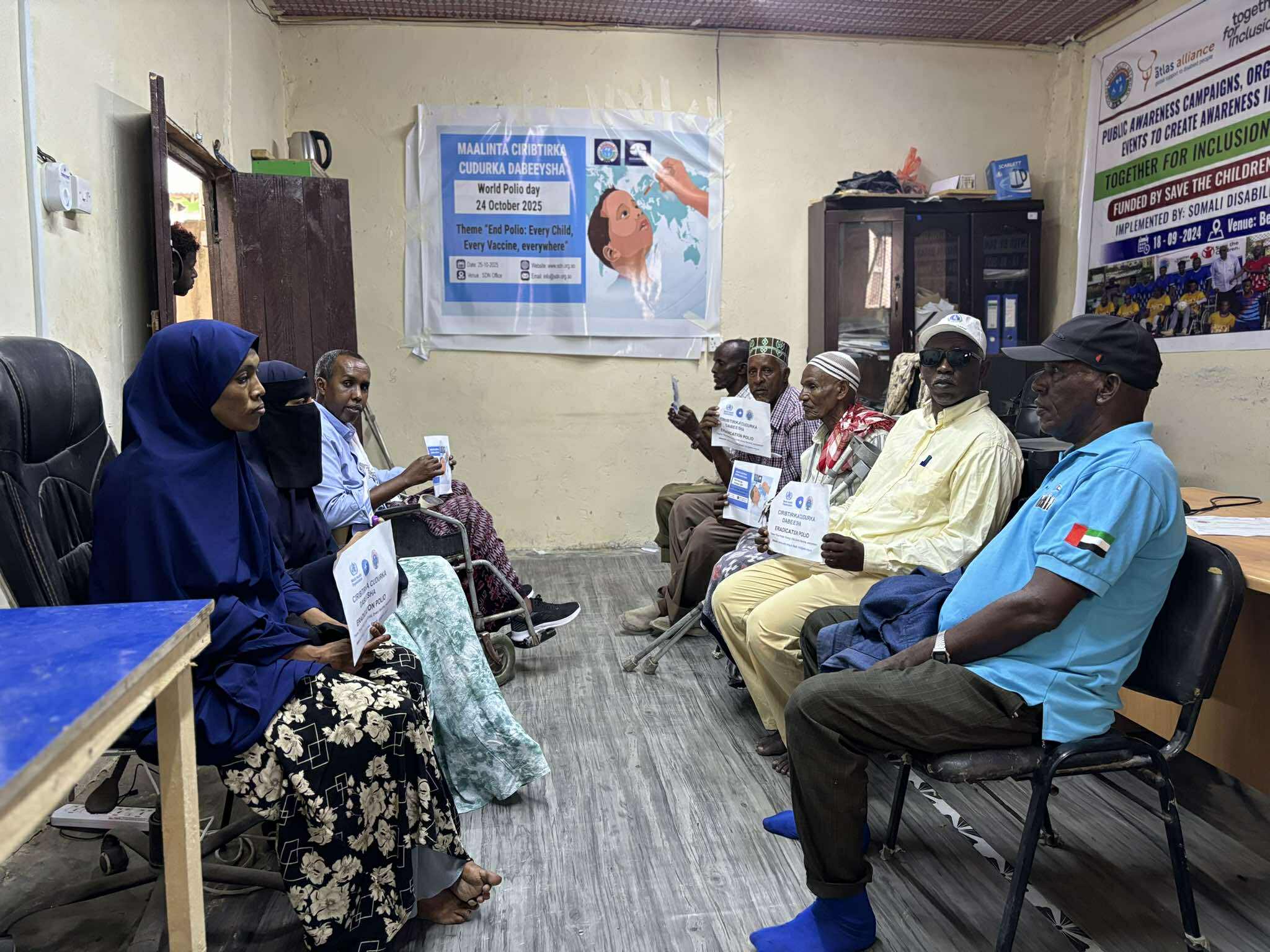 On 25 October 2025 Post Date Event is held in Mogadishu World Polio Day event held in Mogadishu by the Coalition of Somali Organizations of Persons with Disabilities (OPDs). The event aimed to raise awareness on polio prevention, recognize national progress in vaccination, and advocate for disability-inclusive health services. It brought together OPDs, civil society actors, health stakeholders, and humanitarian partners to reflect on achievements, remaining gaps, and the importance of community engagement in eliminating polio from Somalia.