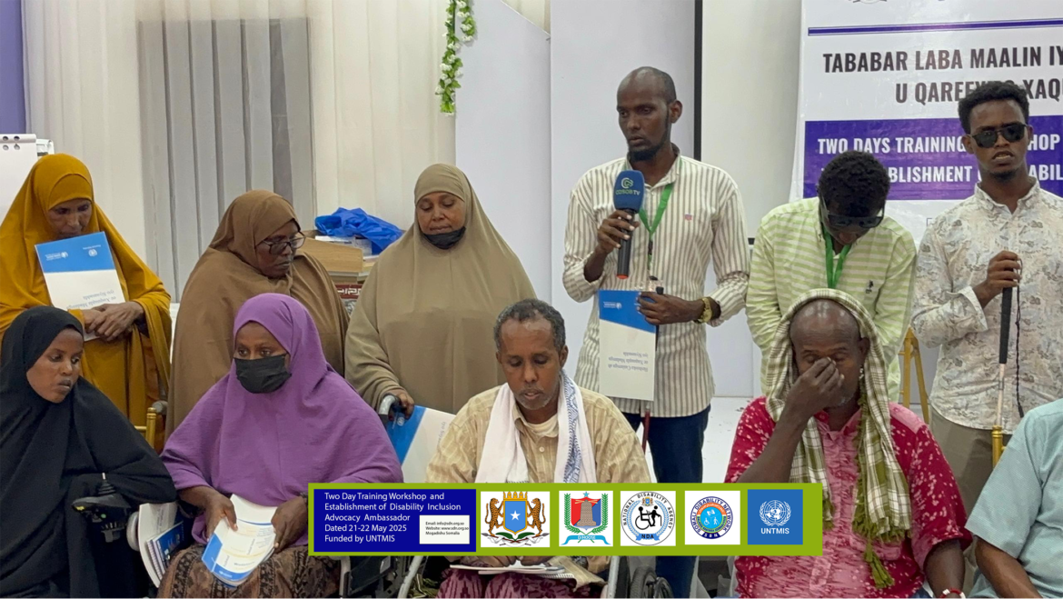On 22 May 2025   inclusion disability advocacy ambassador is established after  two days training workshop has been finalized  9 body  working team mixed both disabled persons and non-disabled persons. The member of the IDAA will repent PWDs and ODPs for the disability inclusion advocacy in Somalia  with cooperation of the ODPs and PWD expert of the disability inclusion in Somalia.