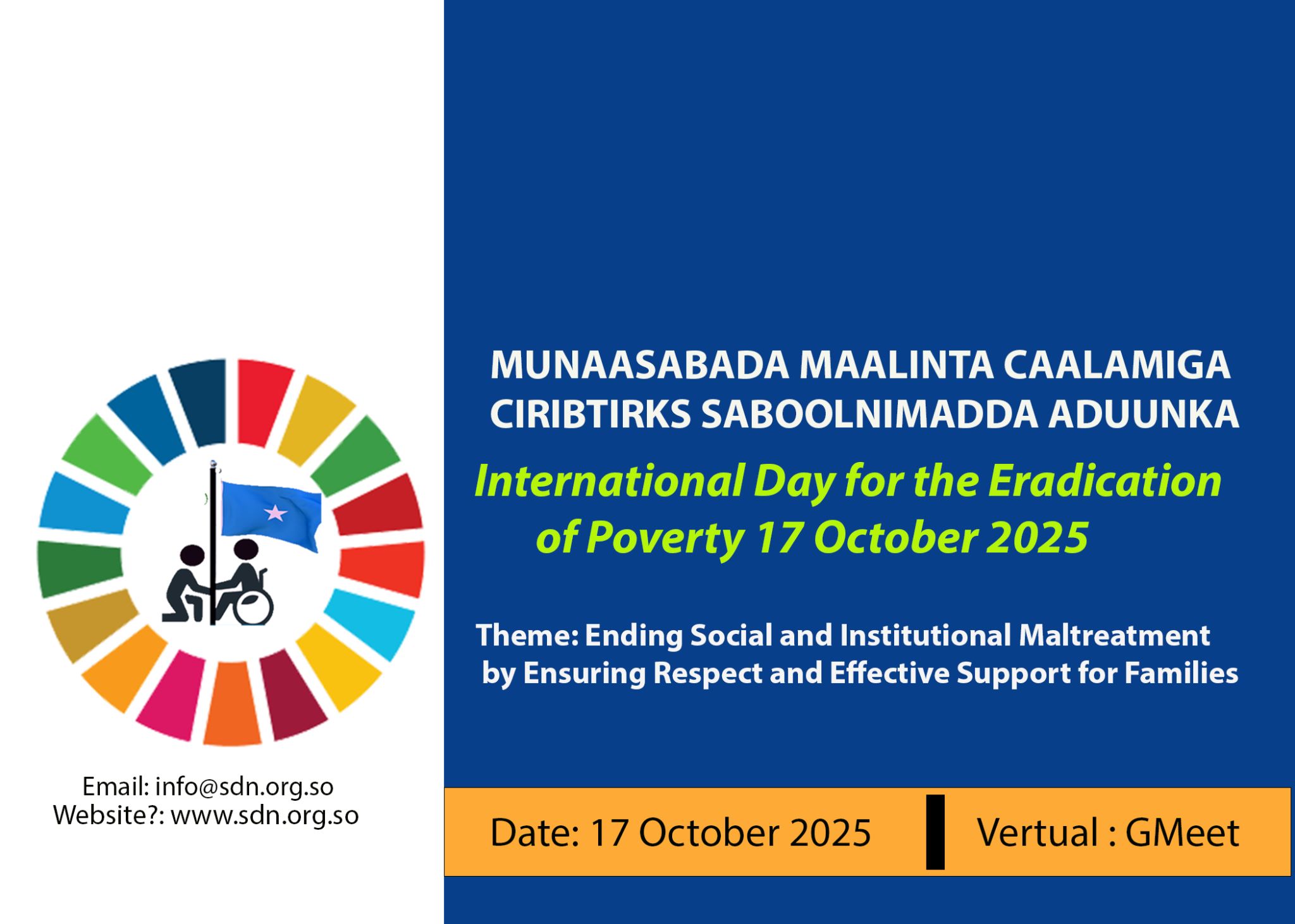 On October 17, 2025, several Somali civil society organizations came together to commemorate the International Day for the Eradication of Poverty. The event highlighted alarming global poverty trends, including the fact that nearly 700 million people worldwide continue to live in extreme poverty on less than two dollars a day, and nearly half of the global population survives on less than six dollars a day. Somalia, affected by more than 35 years of conflict, recurring droughts, and natural disasters, remains one of the countries most impacted by poverty. With over 3.5 million internally displaced persons and around 19 million people in need of humanitarian assistance, the struggle against poverty continues to be a national priority. Globally, poverty now affects an estimated 1.1 billion people, representing a significant share of humanity.